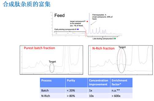? ? ??N-Rich工藝是微量物質的富集過程,比如將產品的相關雜質選擇性地富集在一個循環的層析過程中,待富集至目標量,再進行洗脫回收。該方法特別適用于分離與產品有關的雜質,如異構體和聚集體,并同時用于發現研究。