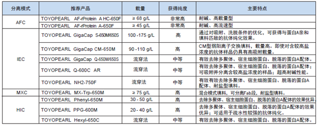 表1. 用于單抗純化的 Toyopearl 產(chǎn)品舉例