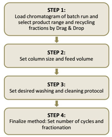 STEP 2:設(shè)定層析柱規(guī)格及上樣量。MCSGP所用2根層析柱的規(guī)格與單柱層析完全相同。
