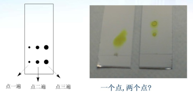 1.?????? 點樣量太大。展開劑不能全部負載。