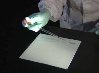 一看:首先在日光下觀察,劃出有色物質的斑點位置